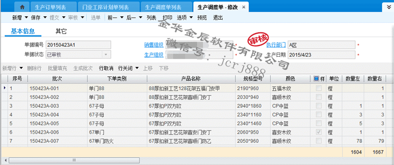 4、 生產(chǎn)調(diào)度,系統(tǒng)下單,下單尺寸自動(dòng)分解、采購物料自動(dòng)分解。