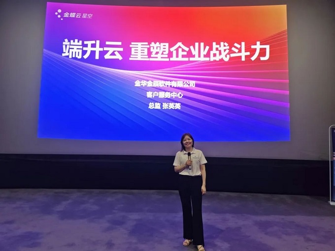 緊接著,由金辰軟件客戶服務(wù)中心的張英英張總監(jiān)分享主題演講《端升云,重塑企業(yè)戰(zhàn)斗力》。
