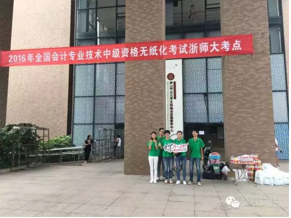 初秋的天氣溫和宜人,2016年全國會計專業(yè)技術中級資格考試今天開始啦!浙江師范大學考點的考生們陸續(xù)趕到考場,準備開始今天的考試。金華金辰軟件有限公司的小伙伴們已經早早的在浙師大考點,為每位考生加油!